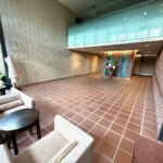 エントランスはこんな雰囲気です。前を通るだけで「おっこれは高そうなマンションだな」と感じさせますね。分譲マンションのプレミアムさをより一層引き立ててくれる立地と風格がありますね。